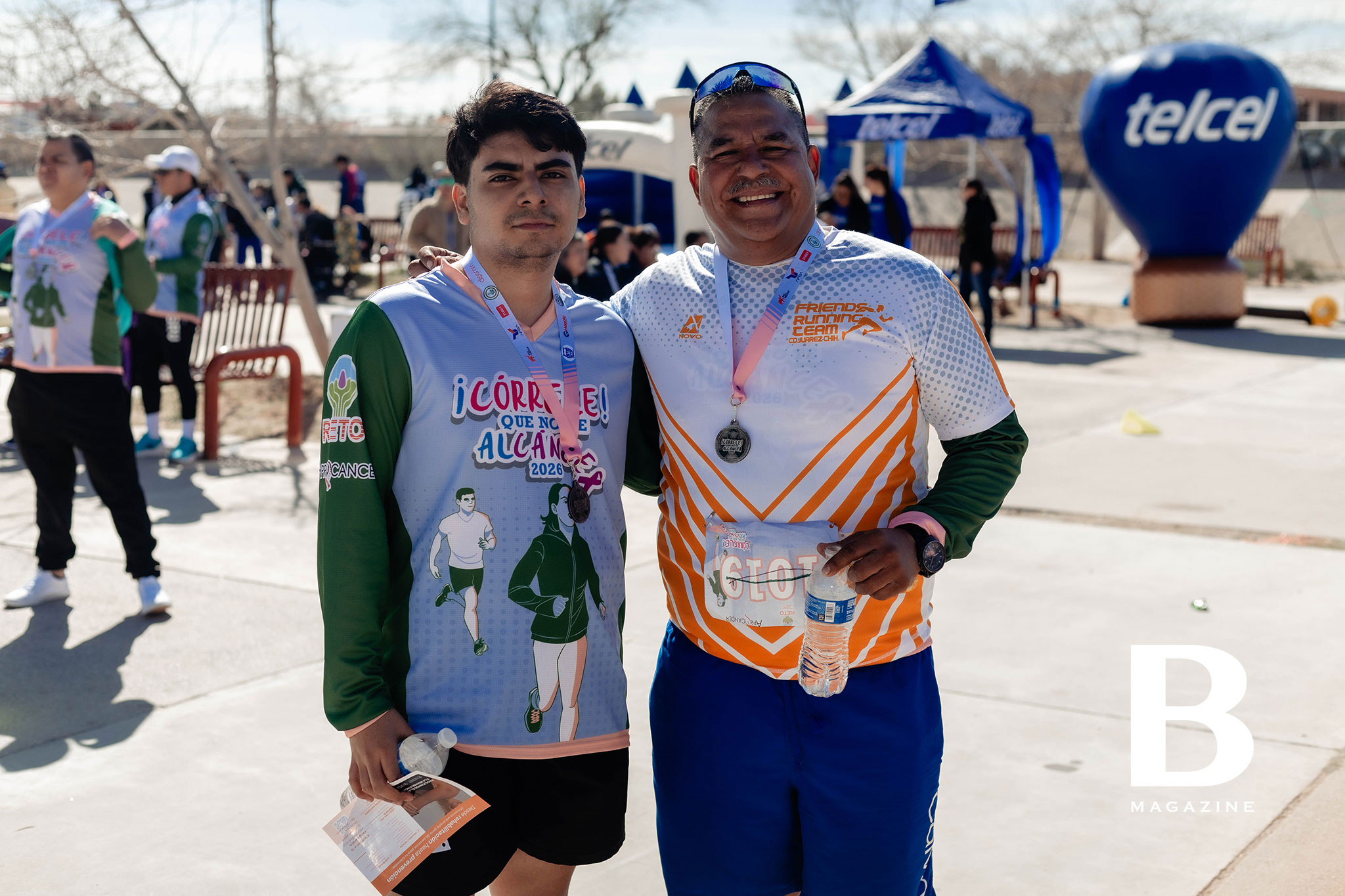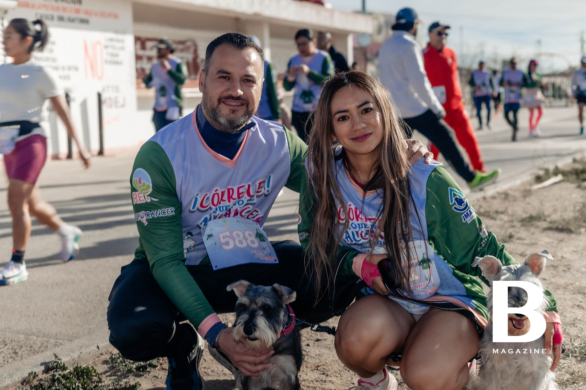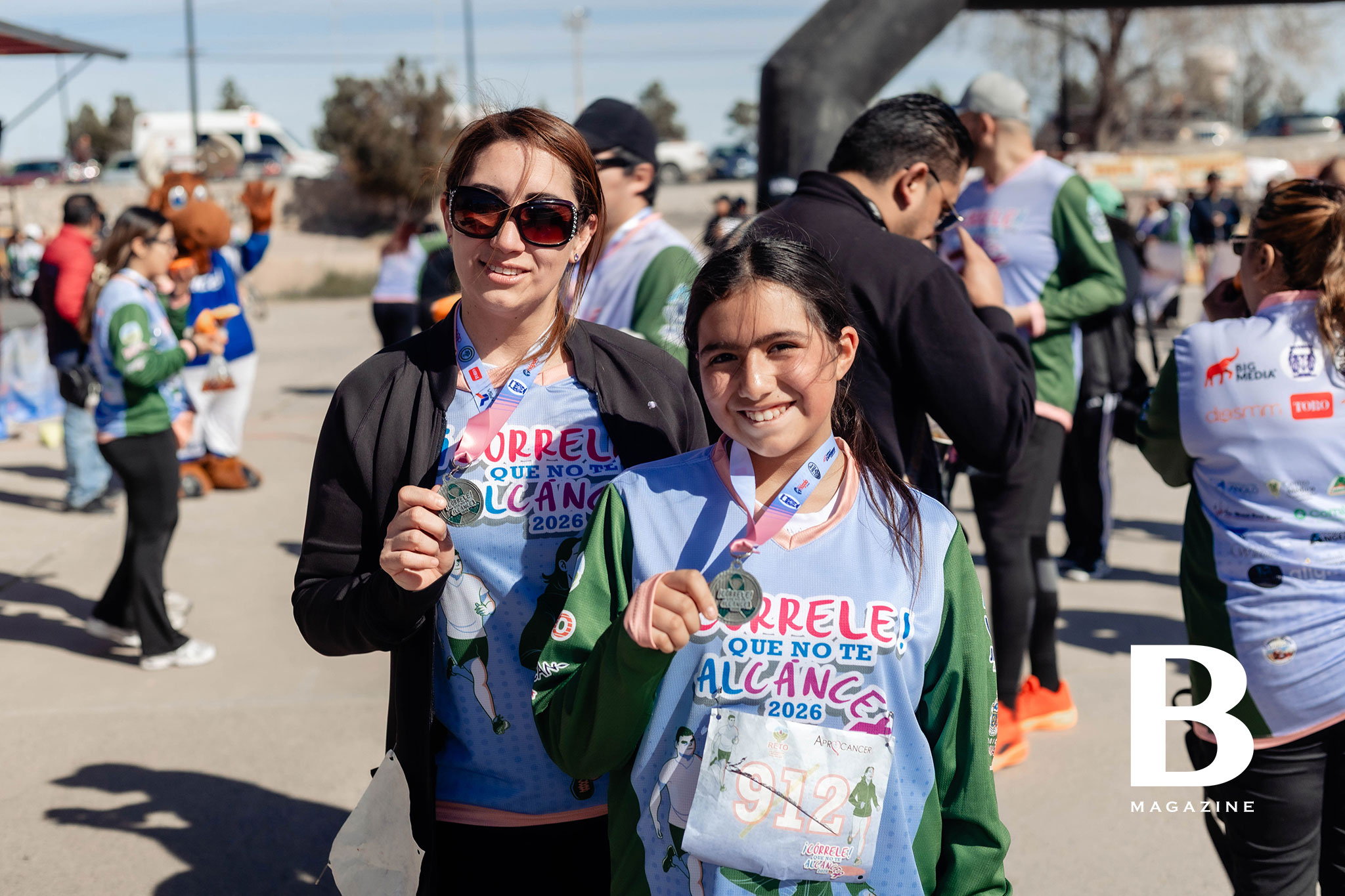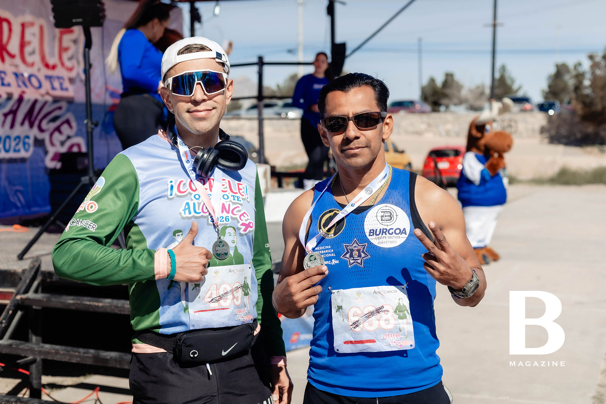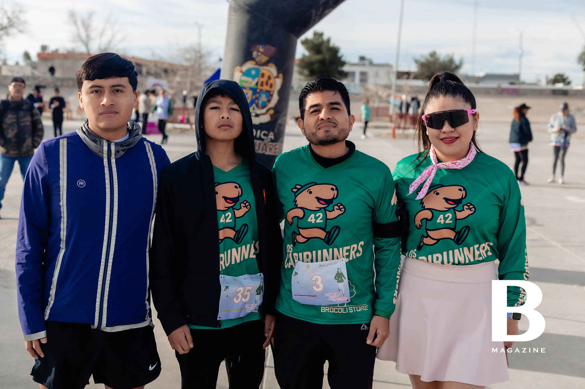 Corredores entusiasmados con las botargas