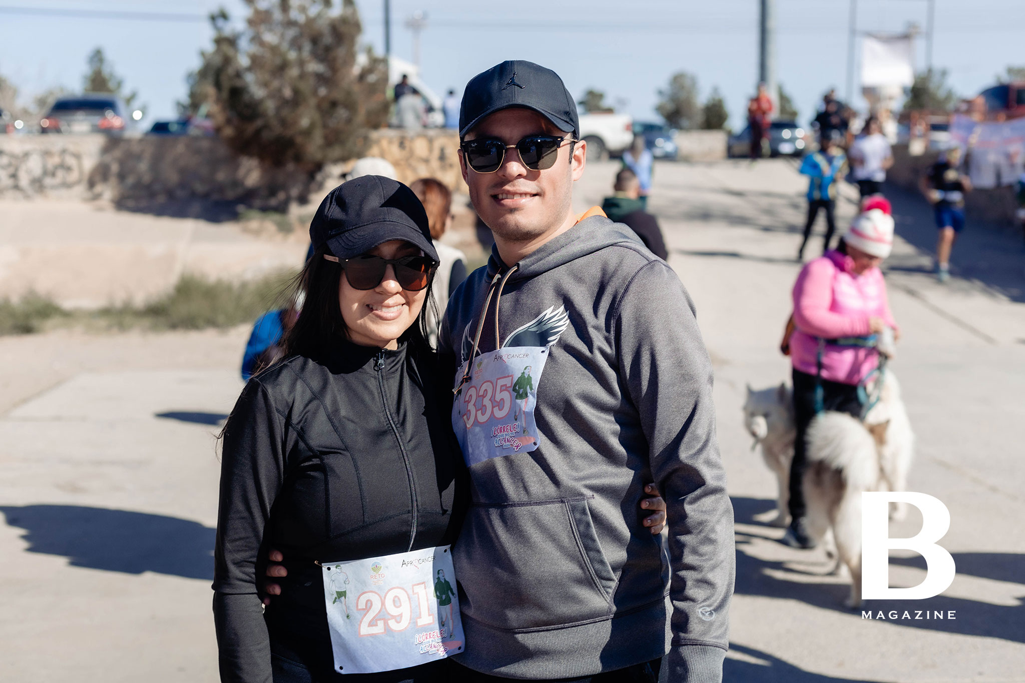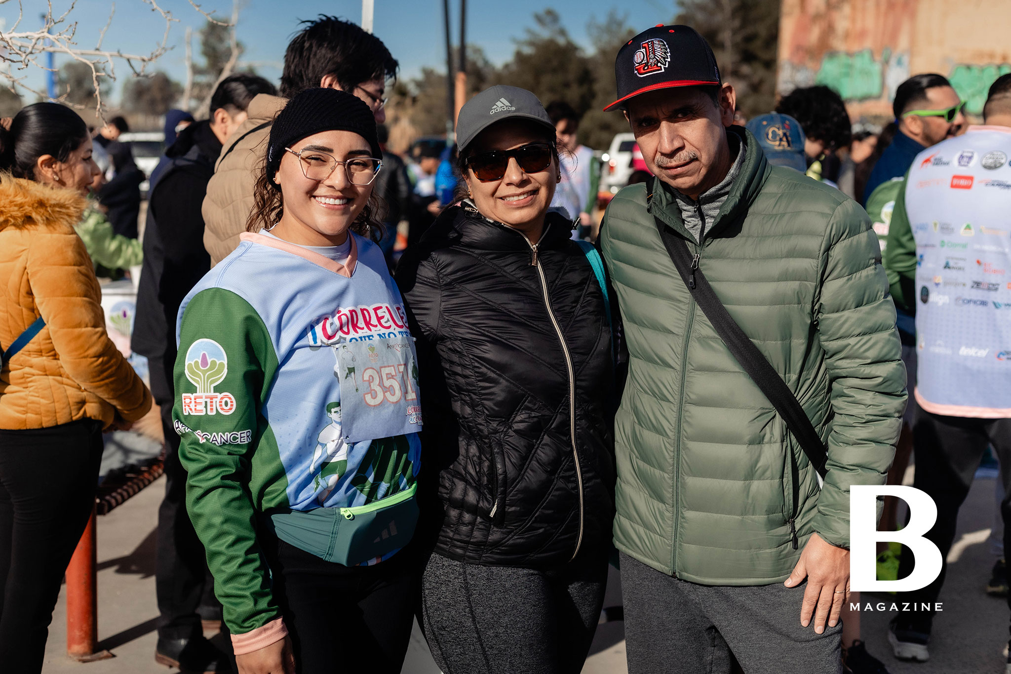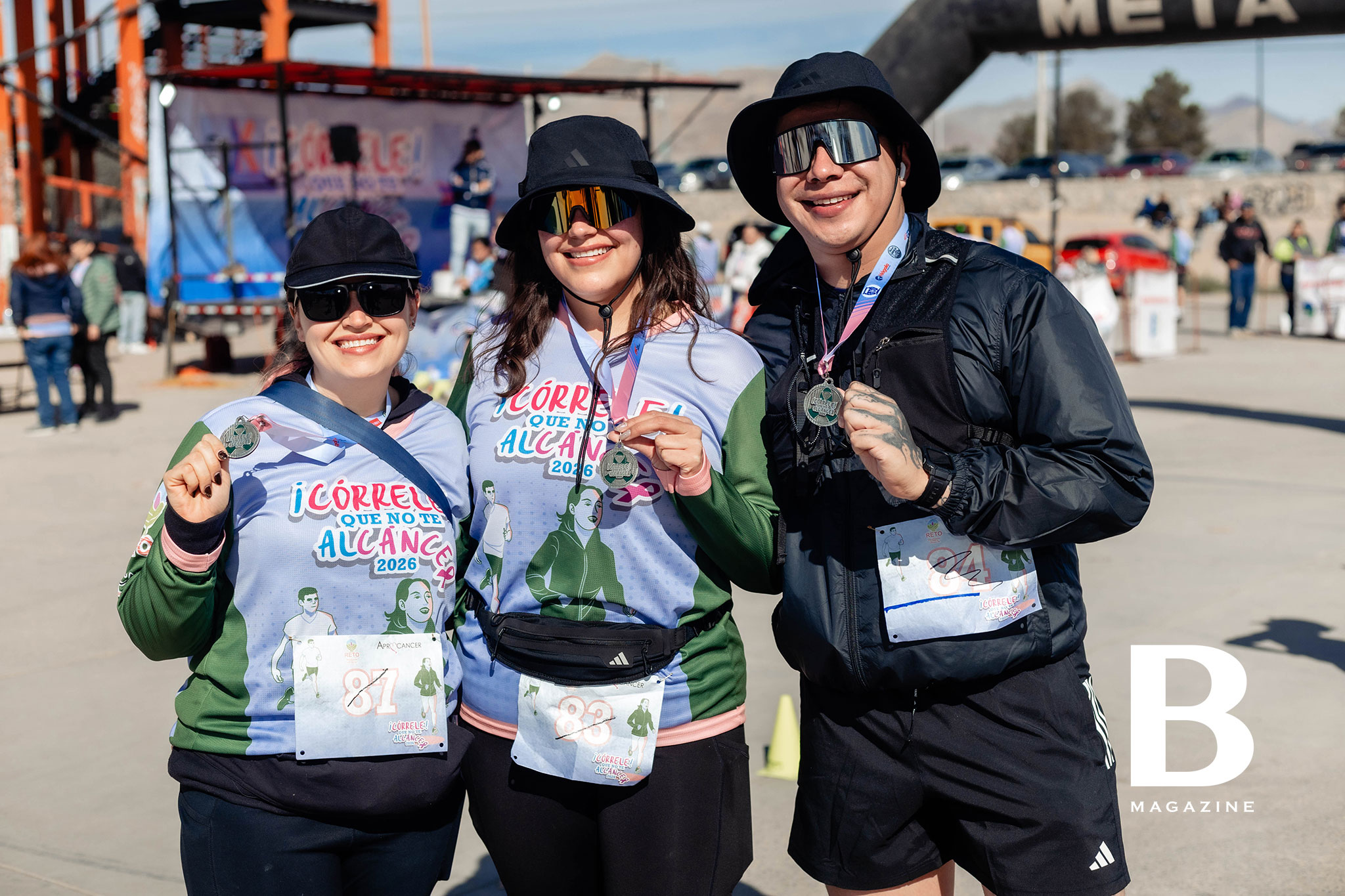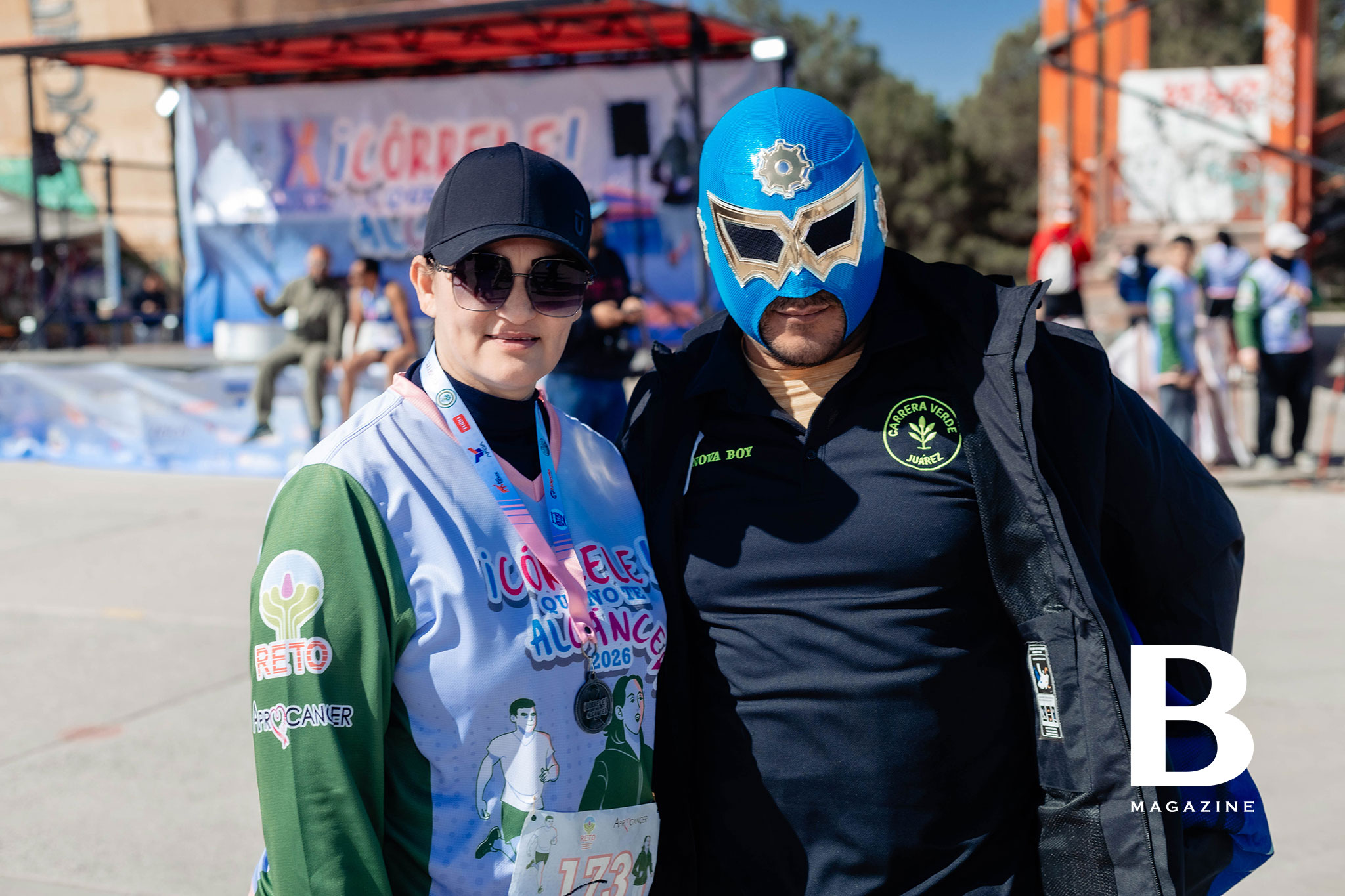 Corredores entusiasmados con las botargas
