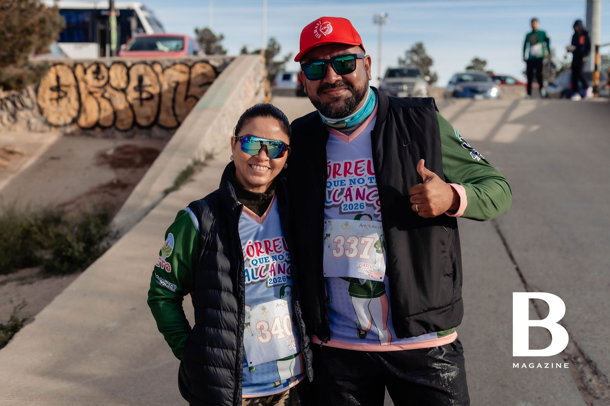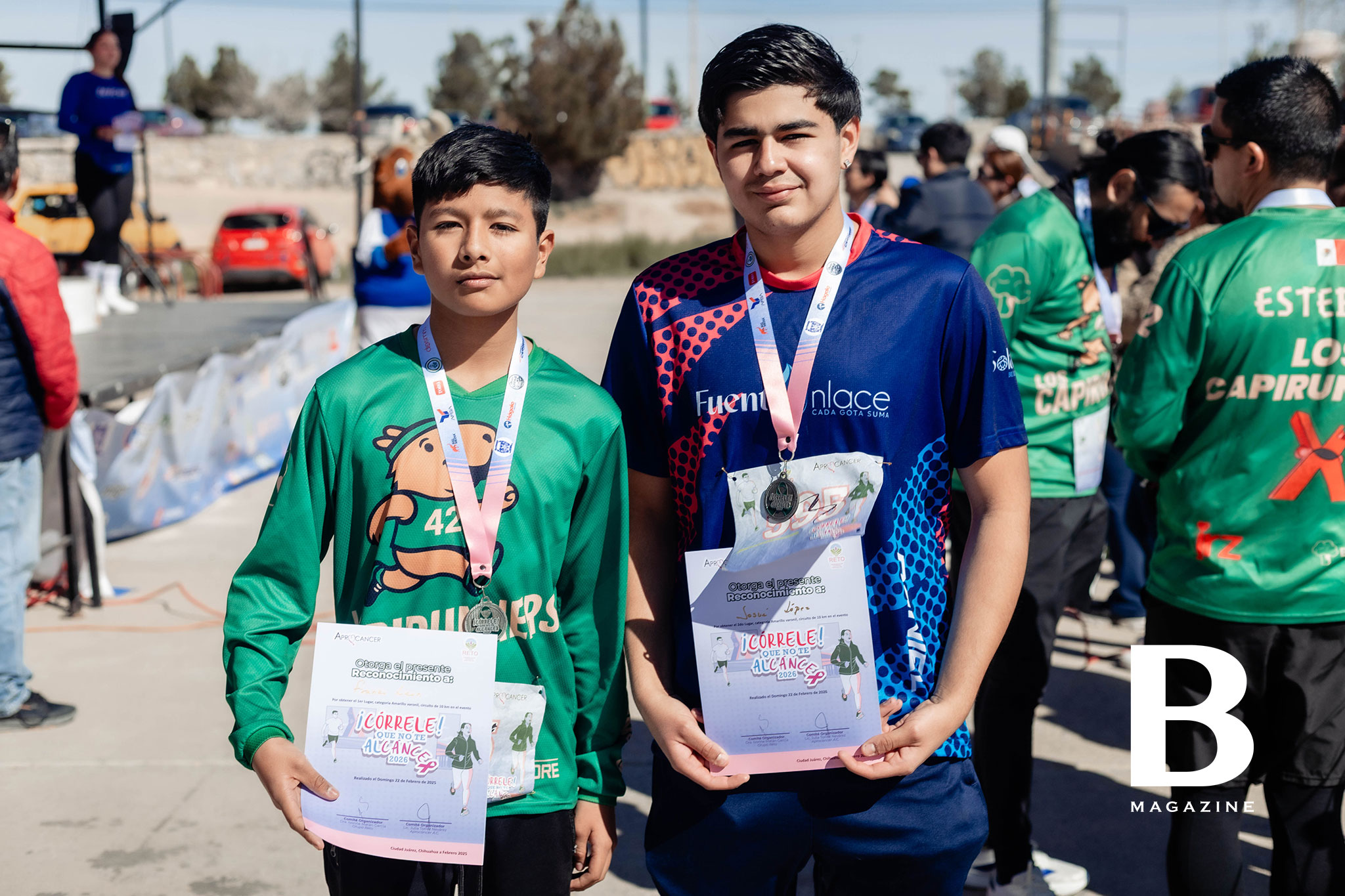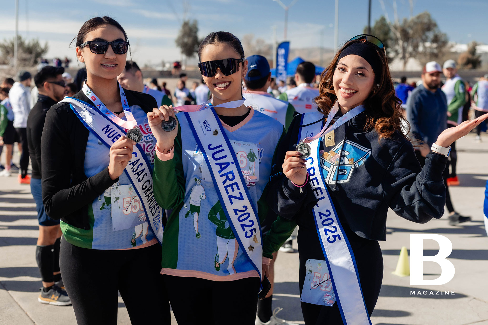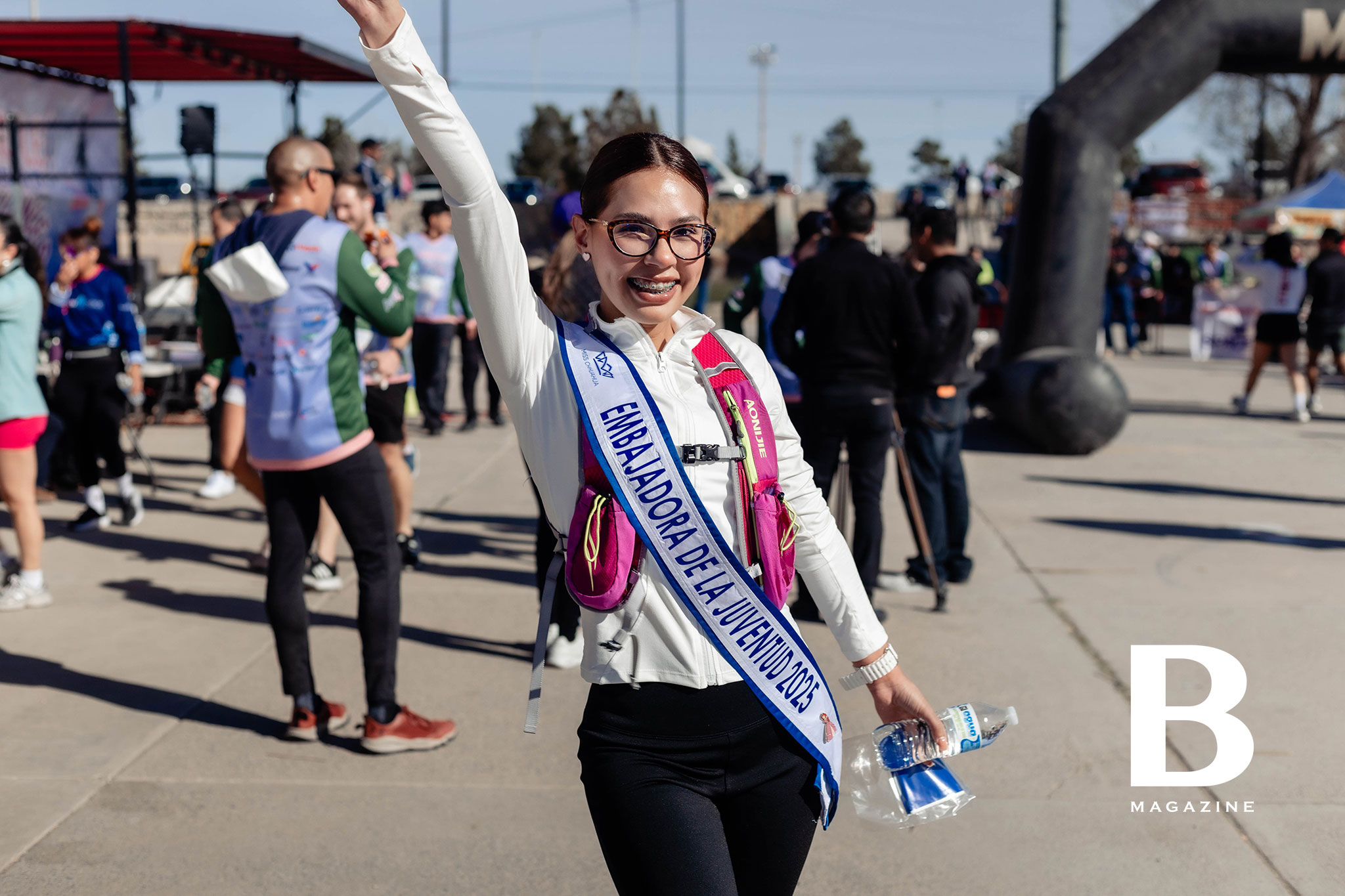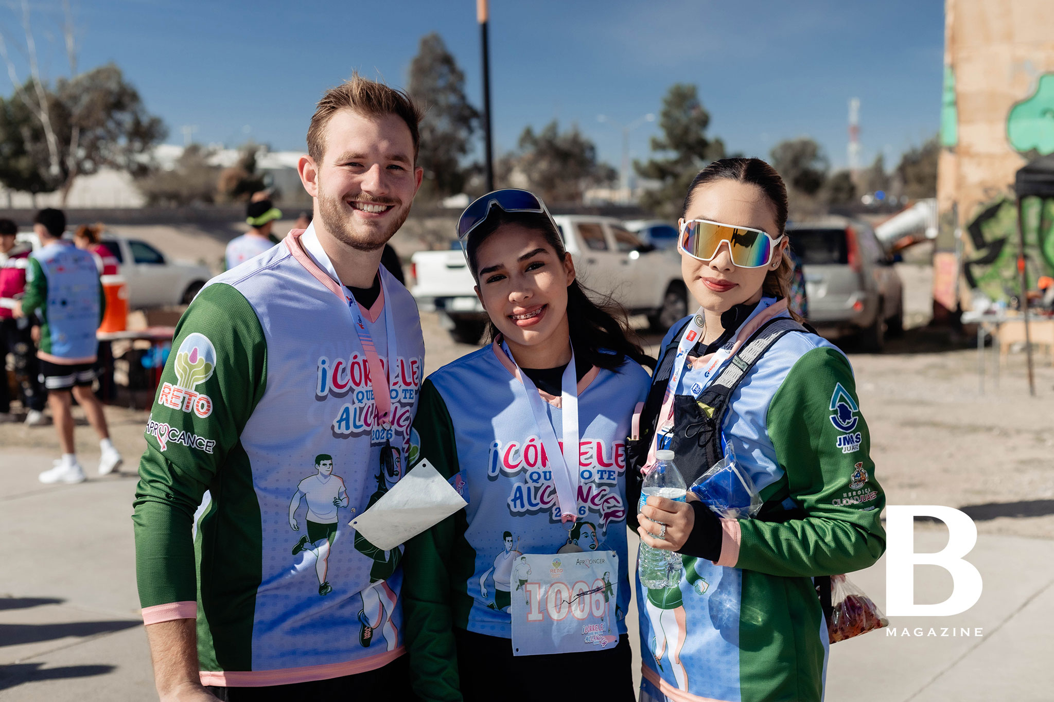 Corredores entusiasmados con las botargas